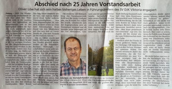 Anl. ein Zeitungsartikel von Jens Dörr im Dieburger Anzeiger vom 05.09.2020 über die langjährige Vereinsarbeit unseres ehemaligen 1. Vorsitzenden Oliver Löw. Danke Jens!
