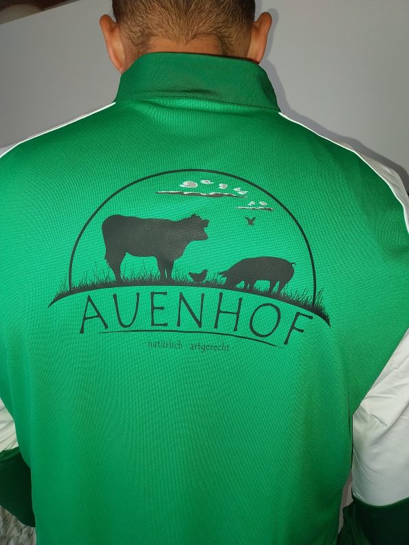 Die F2-Jugend bedankt sich bei unserem Sponsor Sarah und Christoph Breithaupt vom Auenhof für die tollen Ziptops und Trainingshosen.