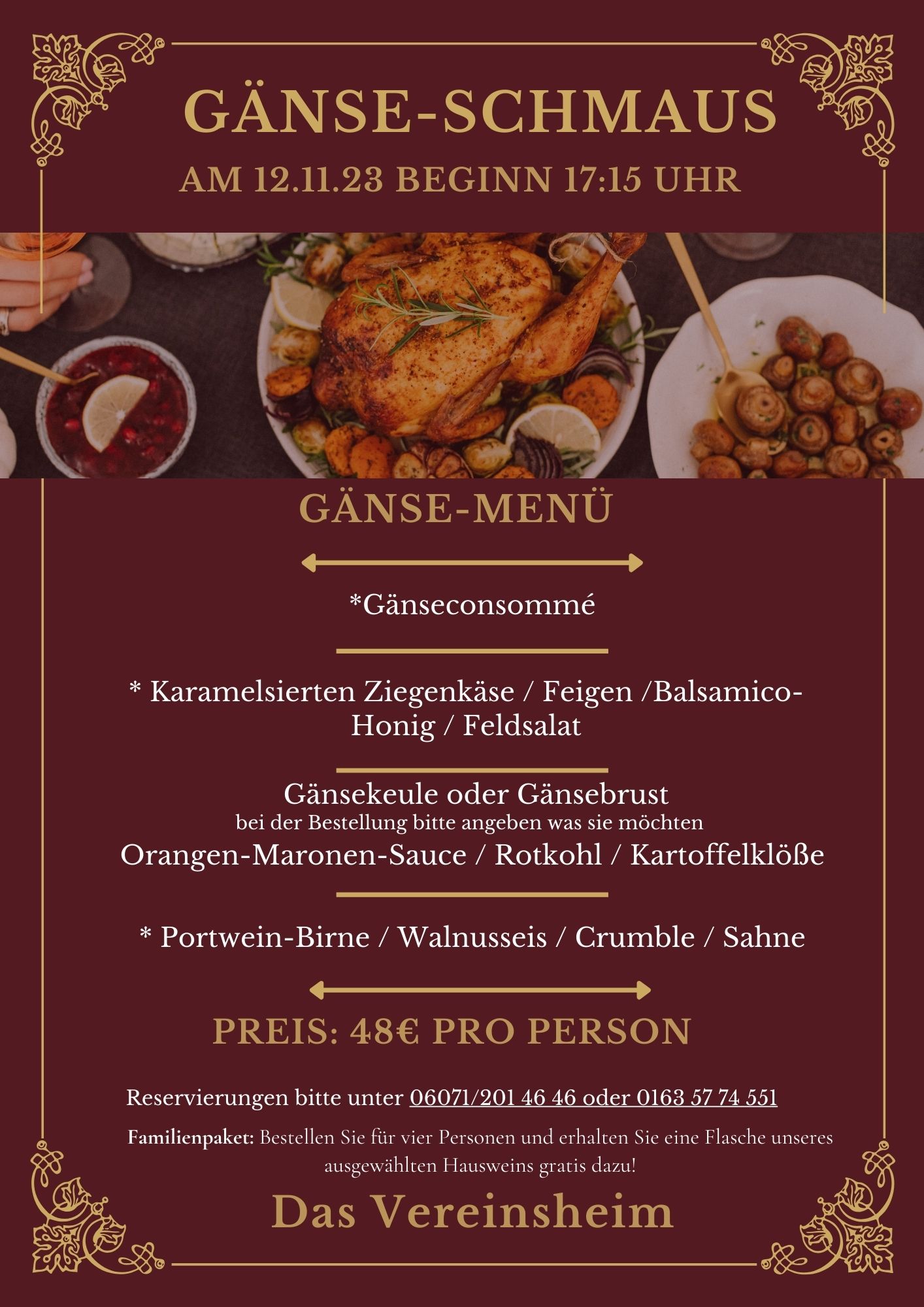 Vereinsheim: Neue Öffnungszeiten – Gänse-Menü