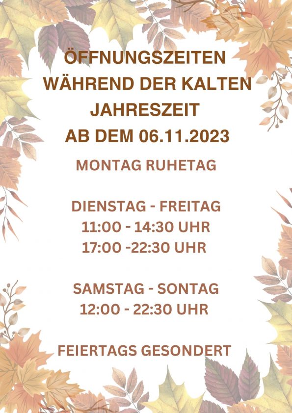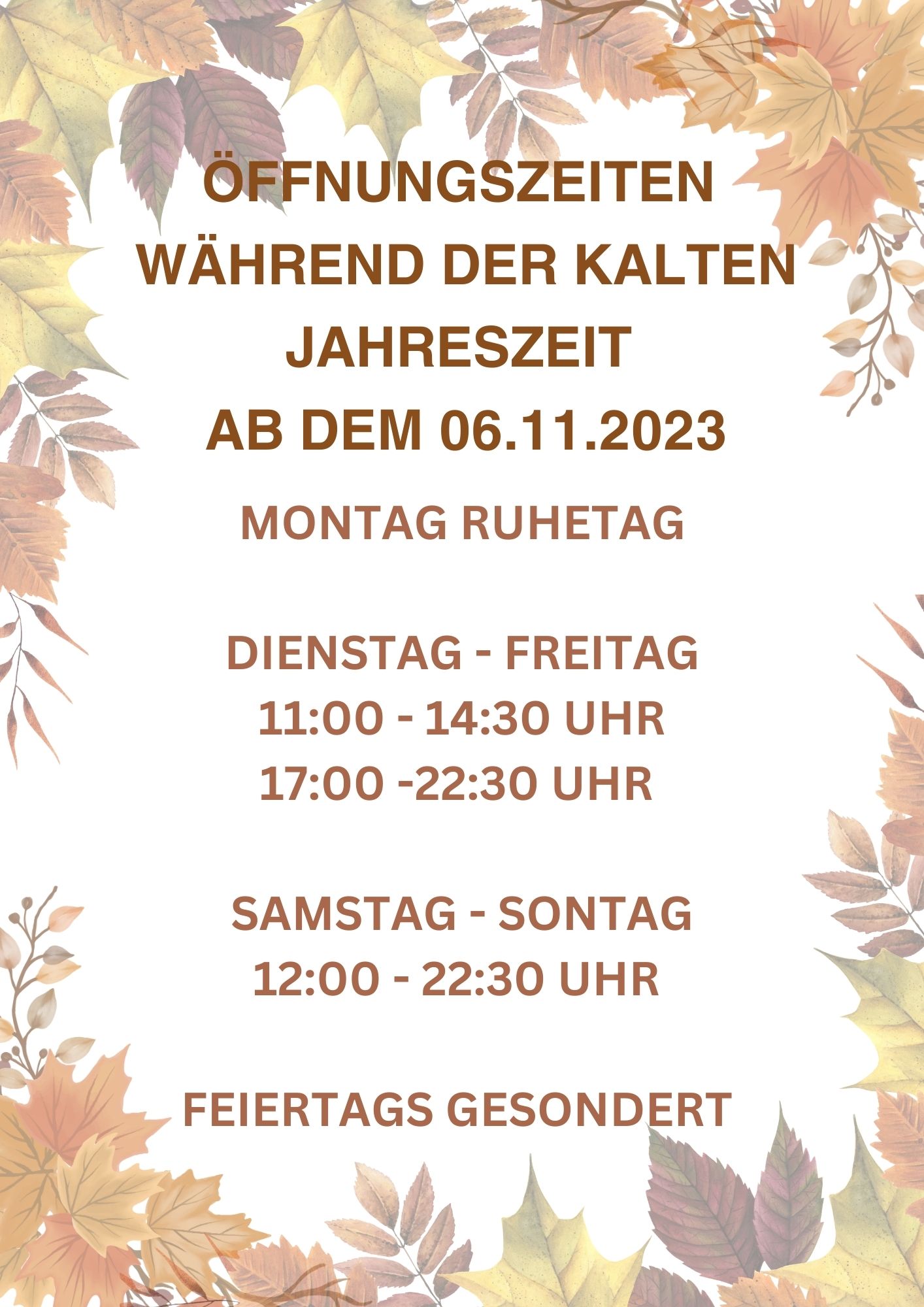 Mit Beginn der kalten Jahreszeit gelten für die Gaststätte in unserem Vereinsheim geänderte Öffnungszeiten. Für Sonntag, 12. November, laden unsere Wirte zu einem Gänse-Menü ein. Näheres entnehmt ihr bitte den beiden Grafiken