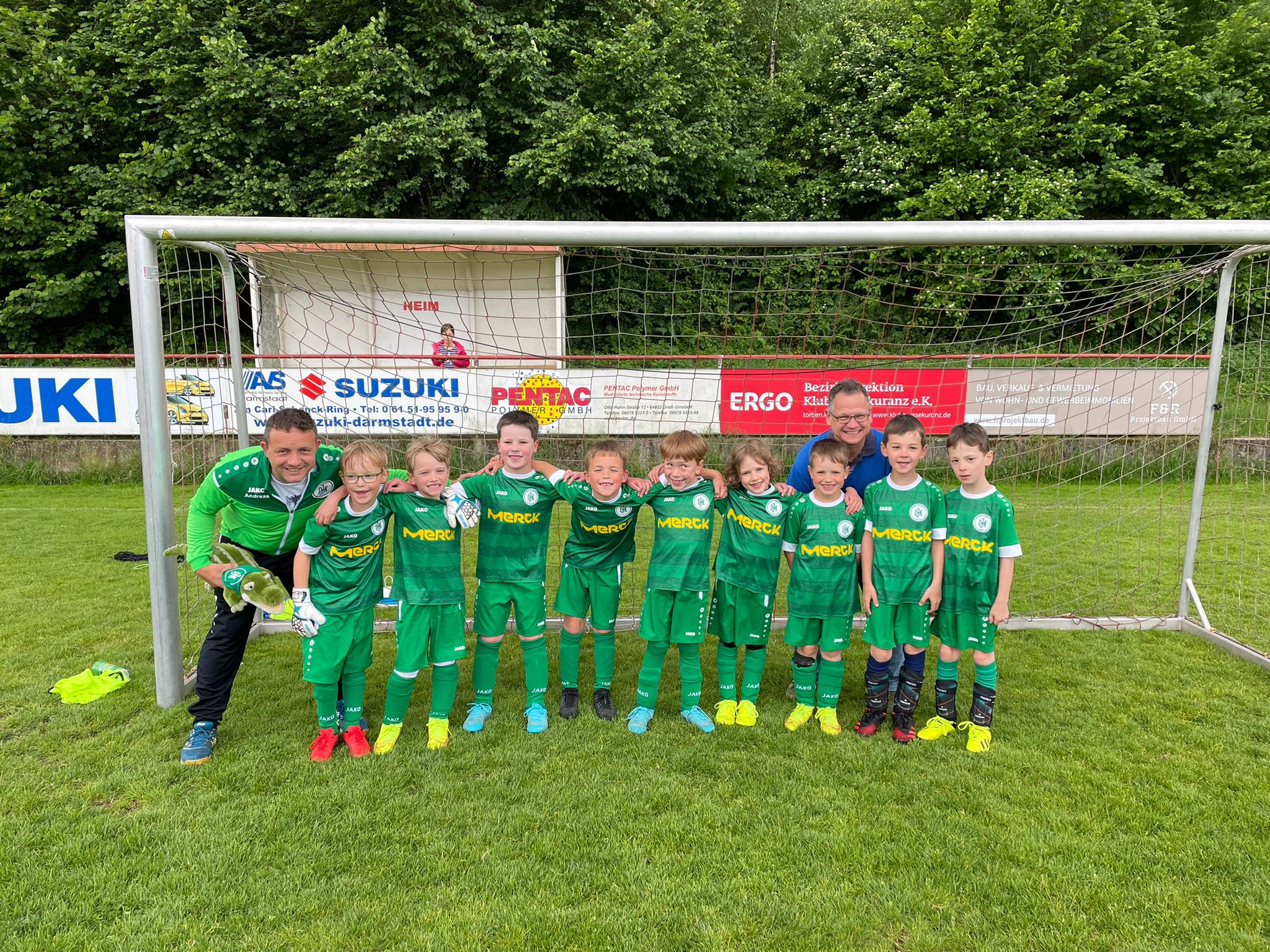 Die G-Jugend bedankt sich bei der Firma Merck für den neuen Trikotsatz.