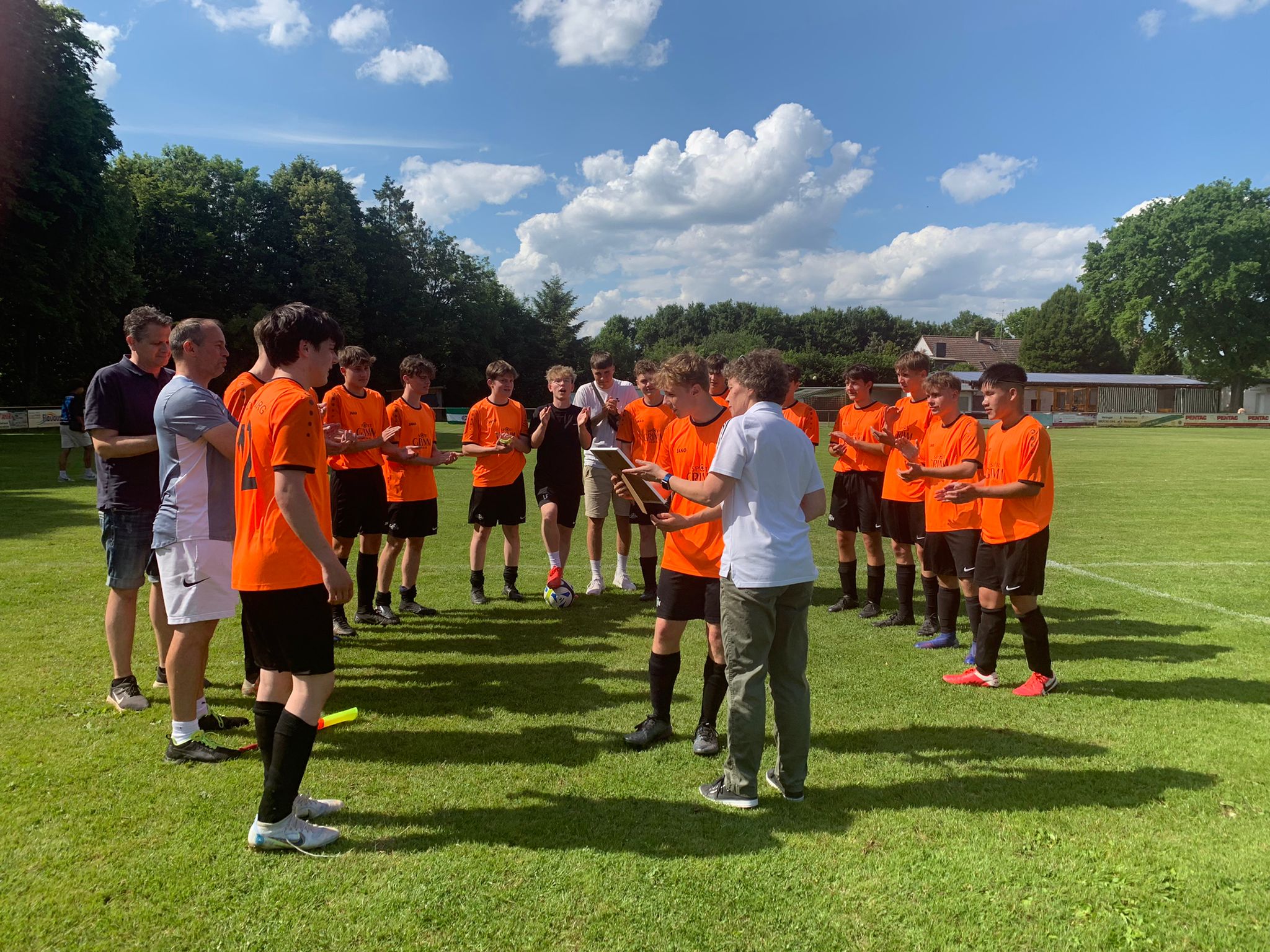 „Da unsere B2-Junioren in der Kreisklasse 1 Dieburg/Odenwald nach Punkten gleichauf mit dem SV Münster an der Spitze lagen, musste ein Entscheidungsspiel auf neutralem Grund bestritten werden.