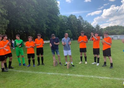 Von Beginn an dominierte unsere JSG das Geschehen auf dem Platz und man merkte unseren B2-Junioren an das sie die Meisterschaft perfekt machen wollten. Gleiches konnte man vom Gegner nicht behaupten, der in allen Belangen mindestens eine Klasse schlechter spielte. So wurde das Spiel am Ende mit 2:ß hochverdient gewonnen. Herzlichen Glückwunsch an das gesamte Team.“